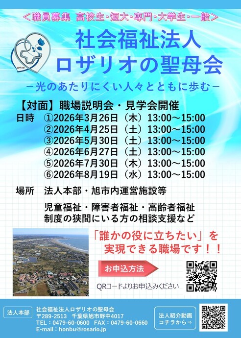 | 開催場所 | 社会福祉法人ロザリオの聖母会 〒289-2513 千葉県旭市野中4017法人本部 |